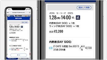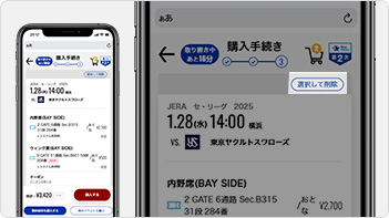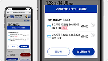カートの中身を削除したい場合は、該当試合の