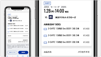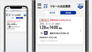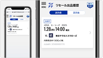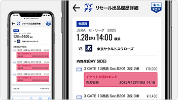 ※シーズンシートの紙チケットの場合、雨天中止等による振替試合ではご利用いただけるリセールサービスが異なります。詳細は振替試合が発生した際にご案内いたします