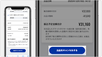 出品キャンセル画面が表示されます。※マイチケットの「出品キャンセル」ボタンでも同様の操作が行えます
