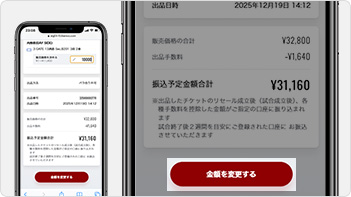 出品内容確認と金額変更画面が表示されます。※マイチケットの「確認・金額変更」ボタンでも